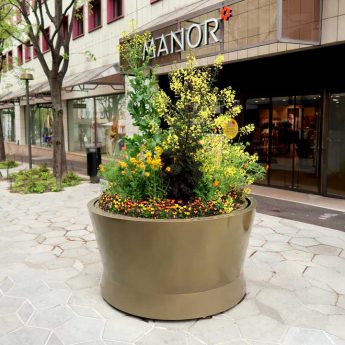 Hydrie est une jardinière urbaine en métal design, idéale pour végétaliser rapidement vos espaces publics : places, terrasses, allées ou centres-villes, sans travaux de voirie.
