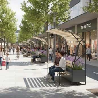 Ombrière Forézien — Ombrière urbaine végétalisée avec banc et jardinière